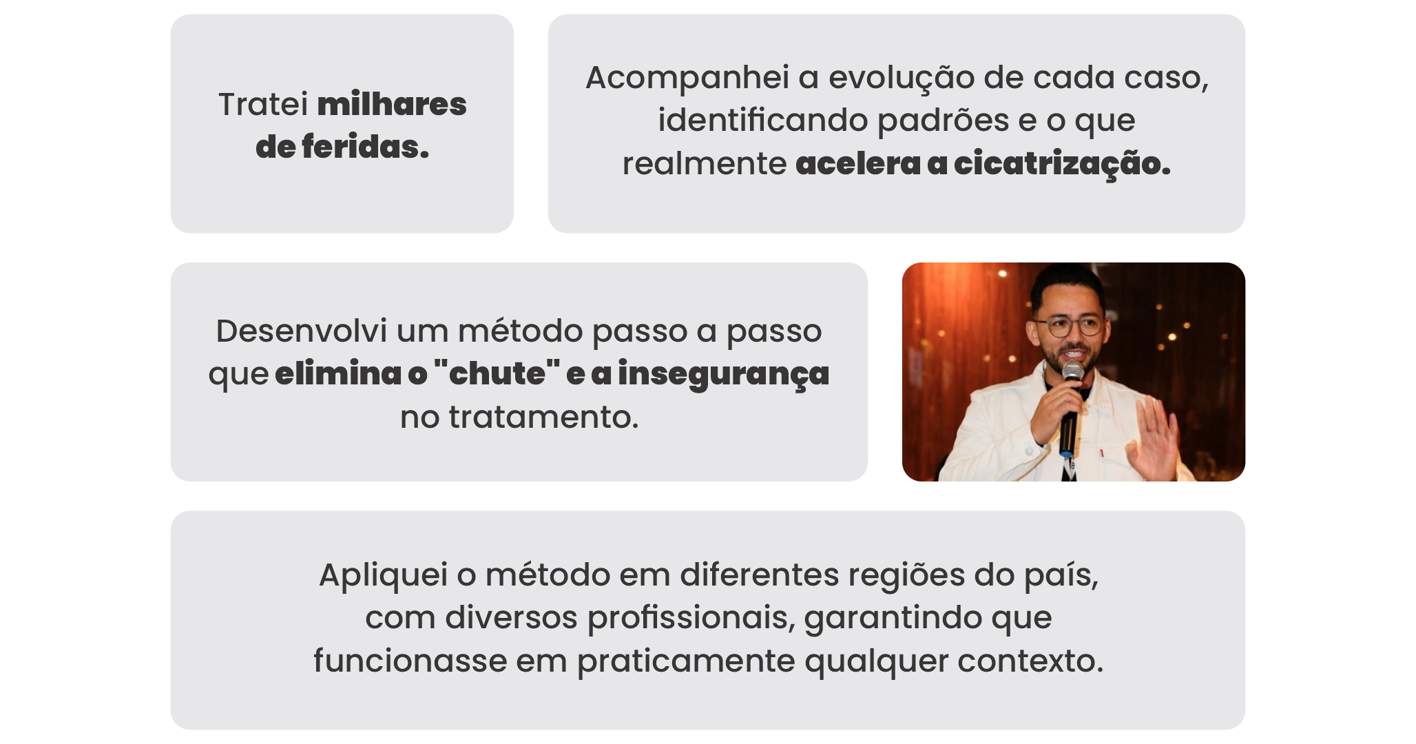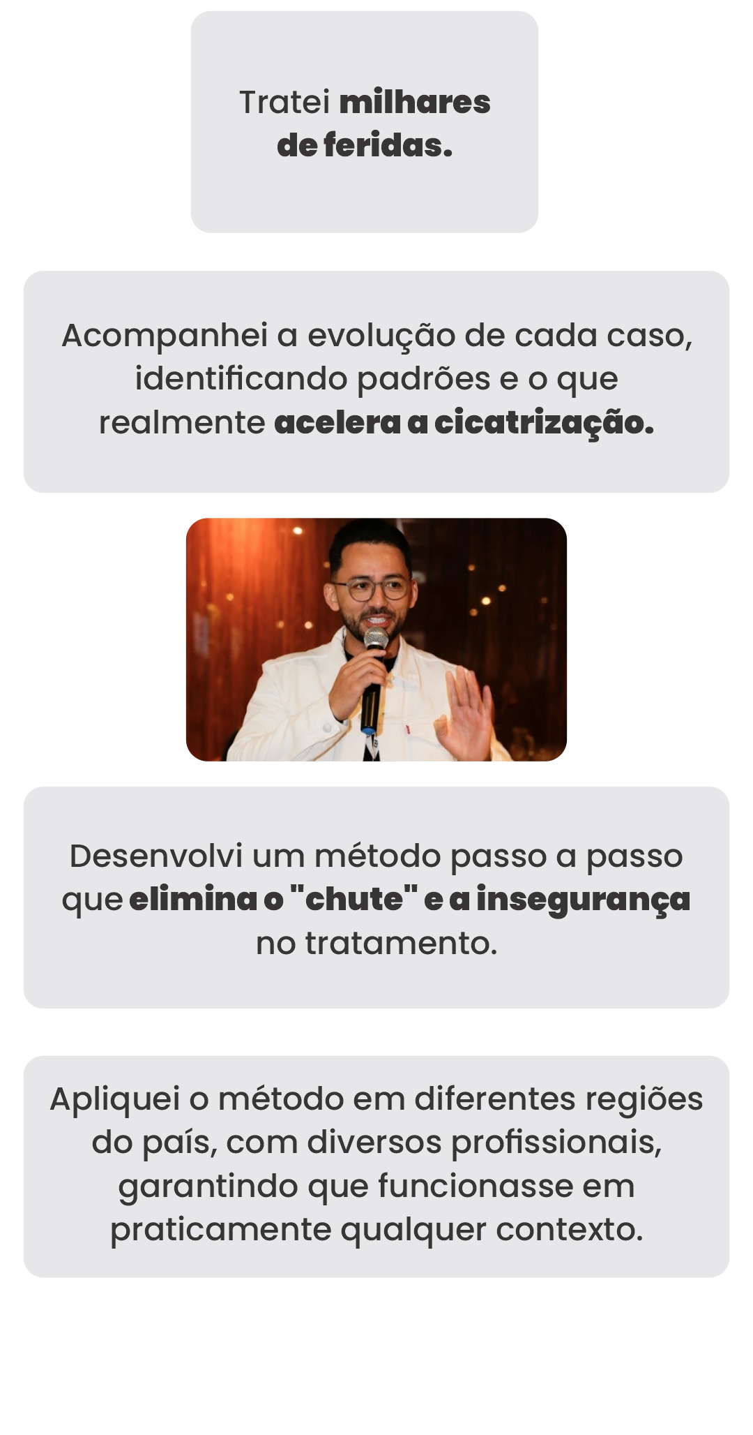 Material exclusivo com casos reais analisados pelo Prof. Jairo, mostrando passo a passo a aplicação do Método IMERSÃO4 em diferentes tipos de feridas. Um guia prático para consulta rápida durante seus atendimentos.